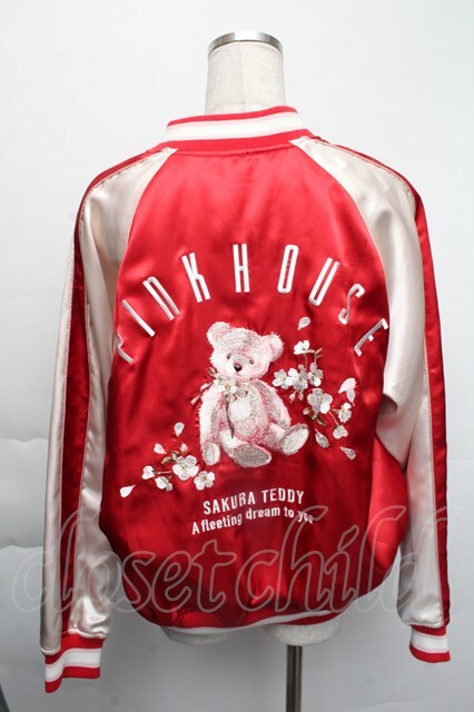 PINK HOUSE / 桜Teddy刺繍使いサテンブルゾン 赤 S-25-12-01-015-LO-JA-SA-ZT127