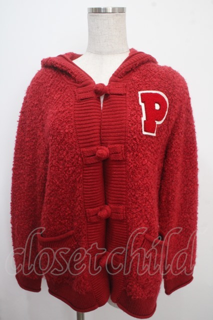 PINK HOUSE / Pロゴワッペン付きフードカーディガン F 赤 Y-25-03-21-106-LO-TO-SZ-ZT166