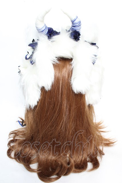 Atelier Beatrice / 角×耳フラワーカチューシャ ホワイト×ブルー Y-25-12-12-117-GO-AC-SZ-ZY
