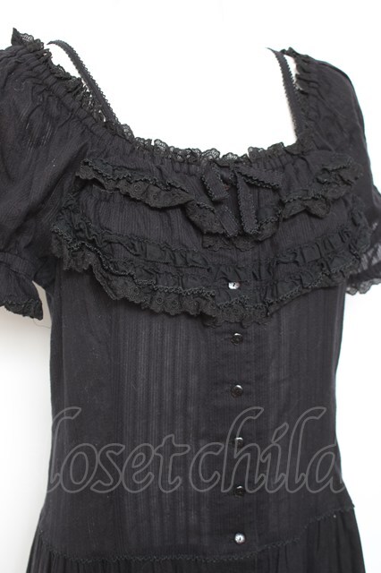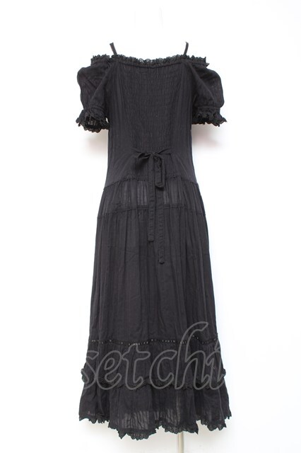 PINK HOUSE / オフショルティアードロングワンピース F 黒 Y-26-01-27-014-LO-OP-SZ-ZY