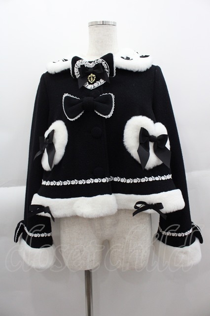BABY,THE STARS SHINE BRIGHT / 【受注生産】ハートリボンショートコート 黒X白 I-25-04-07-027-BA-CO-HD-ZI [2100060000029917-I-25-04-07-027-BA-CO-HD-ZI]