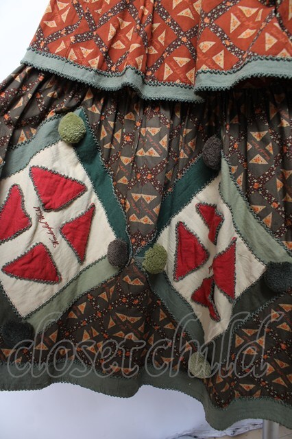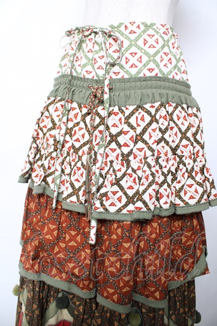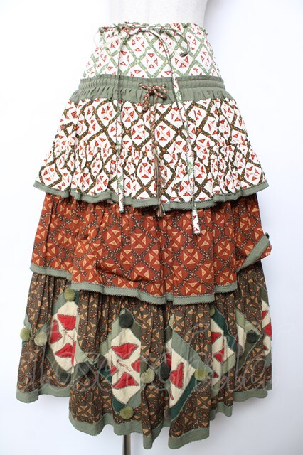 WONDERFUL WORLD / モチーフ付きパッチワークティアードスカート グリーン系 Y-25-12-08-094-LO-SK-SZ-ZY [2100070000036034-Y-25-12-08-094-LO-SK-SZ-ZY]