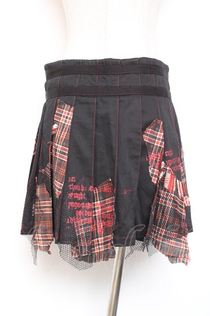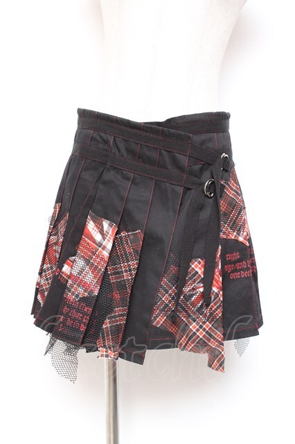 h.ANARCHY / チェック×ユニオン柄プリーツ巻きスカート 黒 Y-26-01-20-123-HN-SK-SZ-ZI