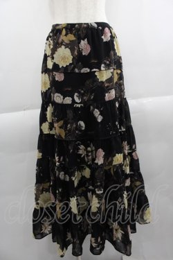 INGEBORG / カメリアデザインスカート S 黒XピンクX緑 I-25-04-16-100-LO-SK-HD-ZT418