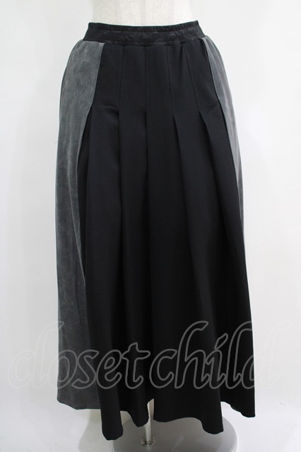 Qutie Frash / レイヤード風プリーツロングスカート 黒×グレー H-25-05-02-004-QU-SK-KB-ZT083