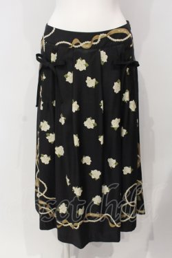 INGEBORG / カメリアジュエリープリントスカート 9号 クロ O-25-04-24-049-LO-SK-IG-ZT270