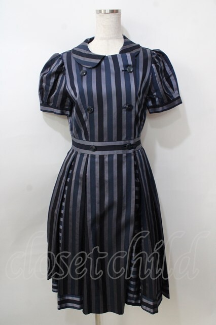 Jane Marple / レジメンタルストライプ ダブルボタンワンピース M 紺 Y-25-09-13-078-JM-OP-SZ-ZT0926B