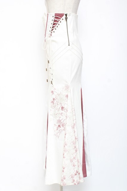 Ozz oneste / 花鳥龍月マーメイドスカート 白 Y-26-01-20-191-OO-SK-SZ-ZS