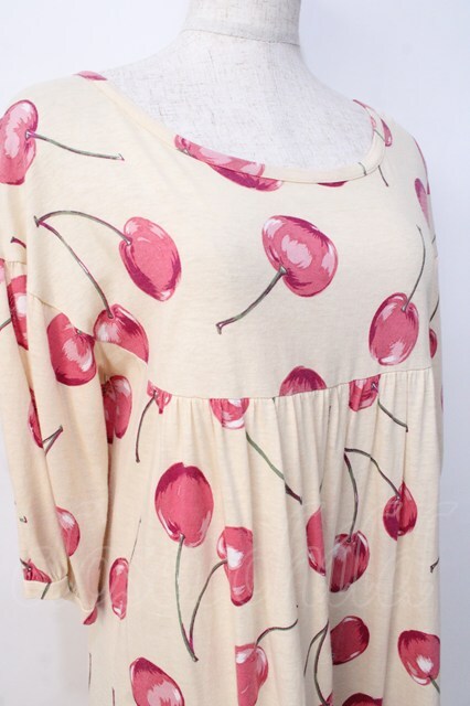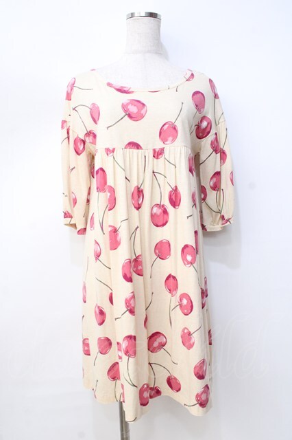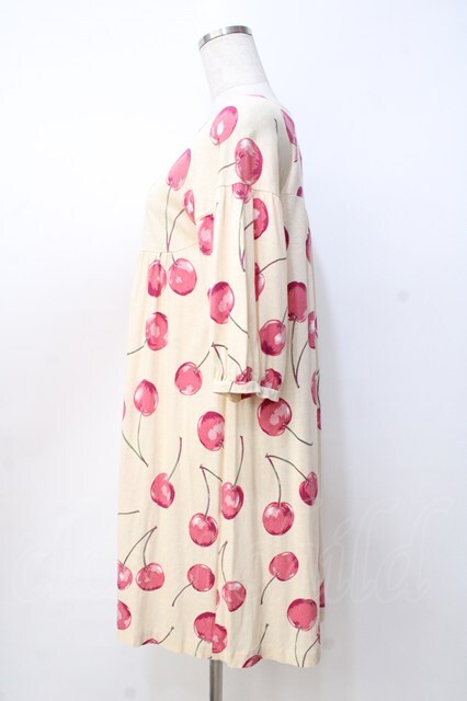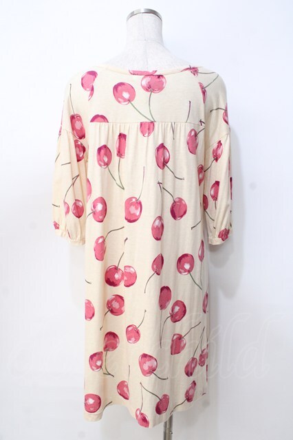 Jane Marple / リヨセルコットンのチェリープリントチュニックワンピース M アイボリー Y-25-09-13-076-JM-OP-SZ-ZT312