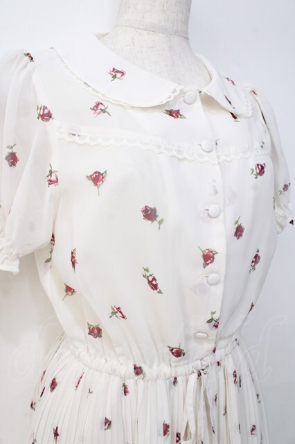 Ank Rouge / VintageRoseプリーツシフォンワンピース M アイボリー Y-25-09-13-066-CA-OP-SZ-ZT377