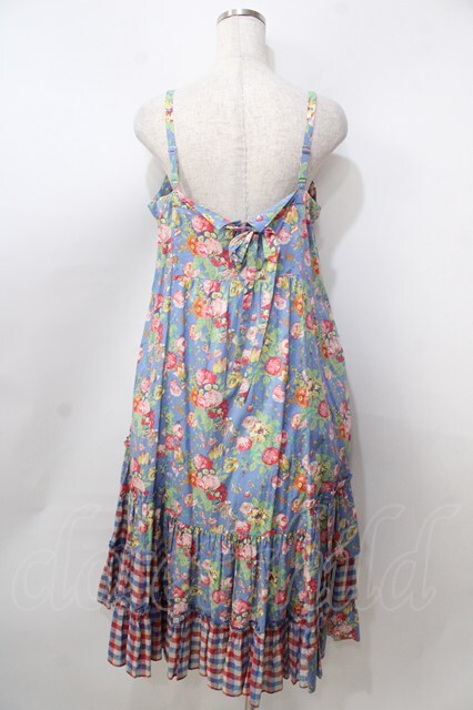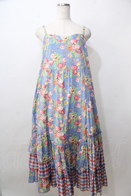 Jane Marple Dans Le Salon / Magical bouquetティアードドレス M ブルーグレー×ブルーチェック Y-25-09-13-086-JM-OP-SZ-ZT312