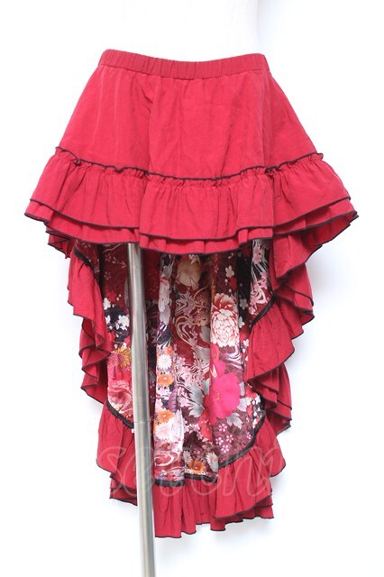 Qutie Frash / 裏地和柄後ろロングスカート 赤 Y-26-01-20-142-QU-SK-SZ-ZY [2100070000039573-Y-26-01-20-142-QU-SK-SZ-ZY]