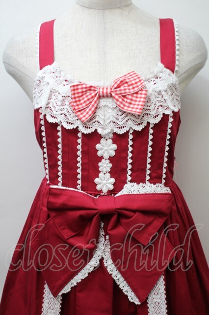 BABY,THE STARS SHINE BRIGHT / Emiliaギンガムジャンパースカート 赤 S-25-10-24-013-BA-OP-SA-ZS