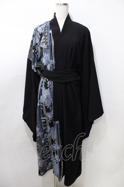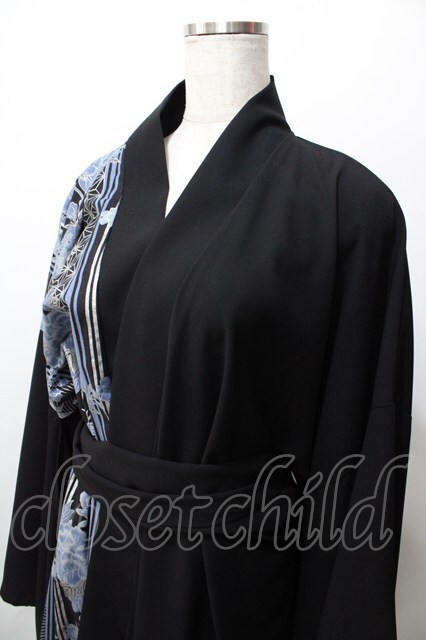 Deorart / 和柄切替着流しガウン 黒×青 Y-25-09-11-053-PU-JA-SZ-ZY [2100070000040033-Y-25-09-11-053-PU-JA-SZ-ZY]
