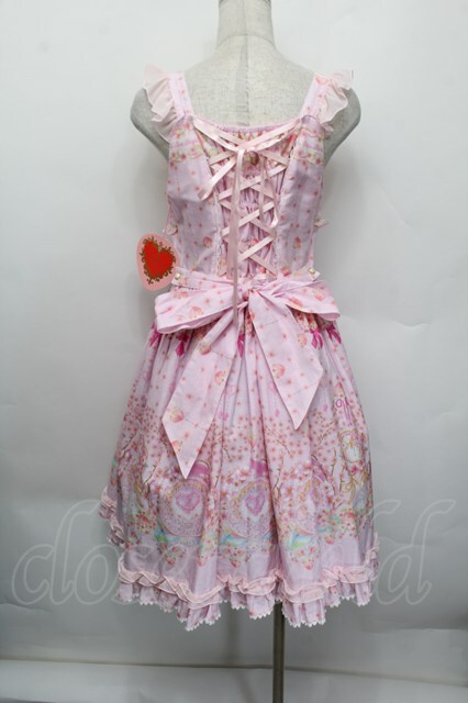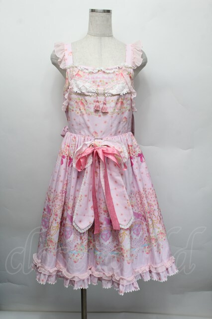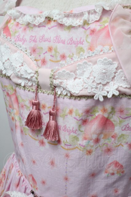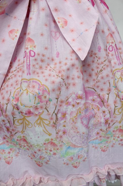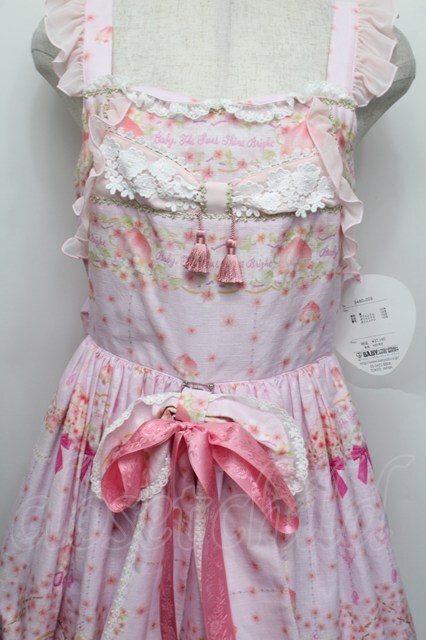 BABY,THE STARS SHINE BRIGHT / はなもも Shangri-La柄リボンジャンパースカート ピンク S-25-12-20-023-BA-OP-ET-ZS