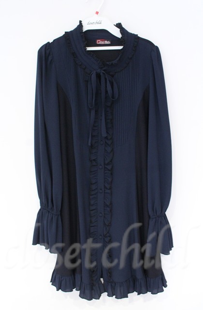 Qutie Frash / フリルブラウスワンピ ネエビー O-25-12-03-031-QU-OP-IG-OS