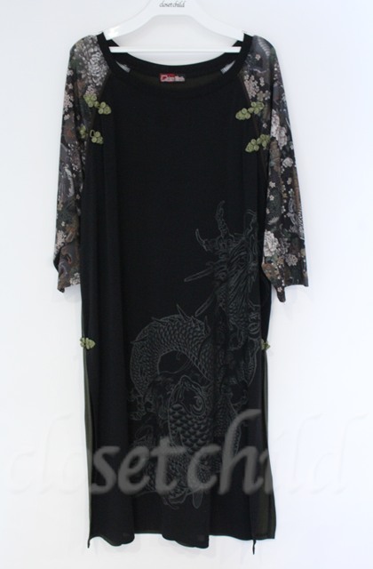 Qutie Frash / 和柄チャイナロングT グリーン O-25-12-03-017-QU-TO-IG-OS [2100080000052891-O-25-12-03-017-QU-TO-IG-OS]