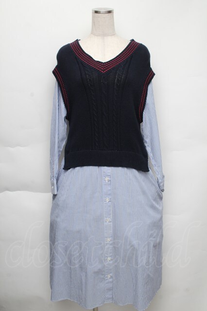 Jane Marple Dans Le Salon / Tilden vest and stripe trompe-l'oeil dress サックスx紺 S-25-12-01-025-JM-OP-AS-ZS