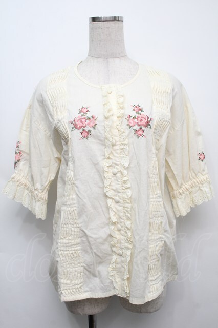 KETTY / 刺 ピンタックフリル半袖ブラウス キナリ S-25-09-12-060-EL-BL-HR-ZS [2100020000027206-S-25-09-12-060-EL-BL-HR-ZS]