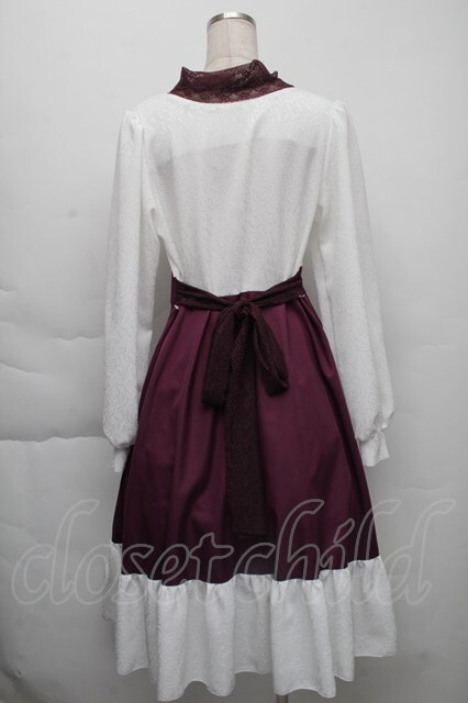 HirokoTokumine / レースカラーワンピース ワインx白 S-25-12-01-040-LO-OP-AS-ZS