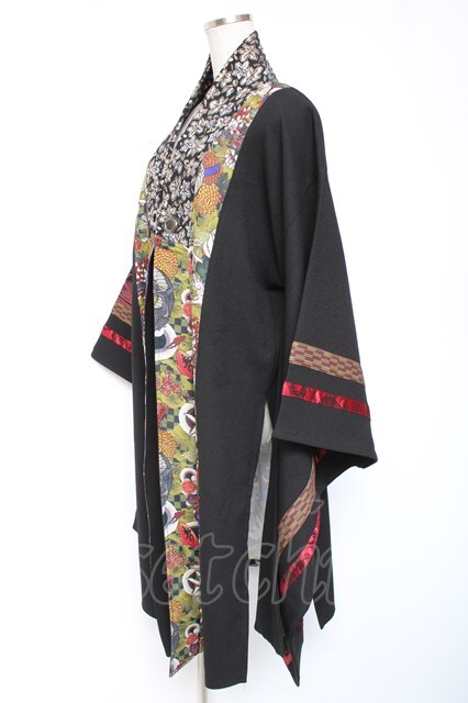 Qutie Frash / 和柄切替着物ロングカーディガン 黒×赤 Y-26-01-20-111-QU-JA-SZ-ZI