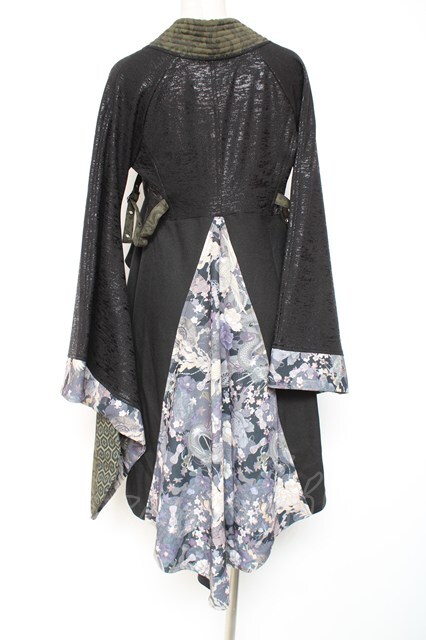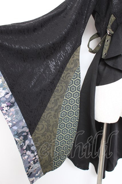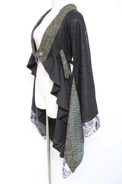 Qutie Frash / 着物ロングカーデ 黒×緑 Y-26-01-20-113-QU-JA-SZ-ZI [2100070000037882-Y-26-01-20-113-QU-JA-SZ-ZI]