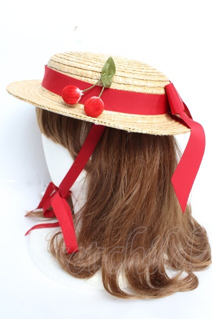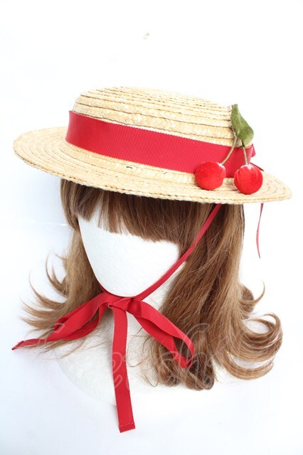 PINK HOUSE / さくらんぼコサージュ付き麦わら帽子 赤 Y-25-12-12-094-LO-AC-SZ-ZY