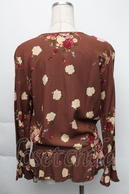 KETTY / カーネーション風プリントブラウス ブラウンX白 S-25-12-01-019-EL-BL-SA-ZT167 [2100060000032931-S-25-12-01-019-EL-BL-SA-ZT167]