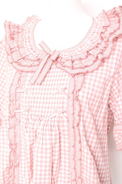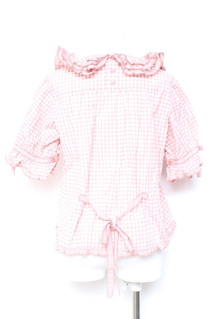 PINK HOUSE / ギンガムチェックパッチワークフリルブラウス F ピンク Y-26-01-27-032-LO-BL-SZ-ZY
