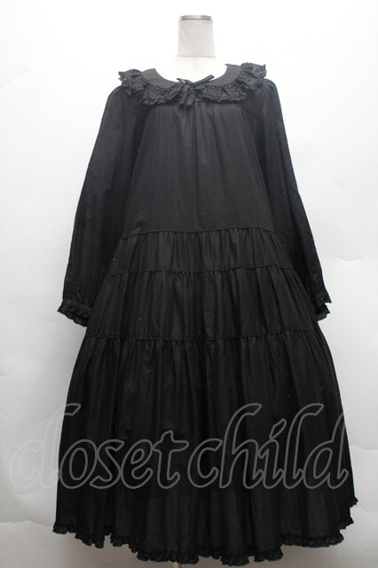 PINK HOUSE / フリル襟付きローンミディワンピース ブラック S-26-02-26-034-LO-OP-SA-ZS