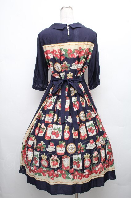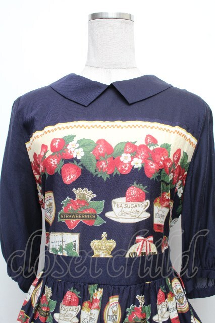 Jane Marple / Strawberry label scarfのタブリエドレス ネイビー S-26-04-01-017-JM-OP-HR-ZS
