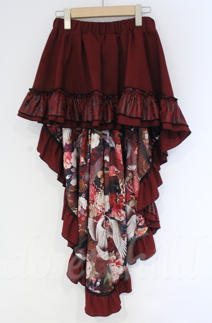 Qutie Frash / 裏地和柄後ろロングスカート レッド O-25-12-03-043-QU-SK-IG-ZT176 [2100080000057170-O-25-12-03-043-QU-SK-IG-ZT176]