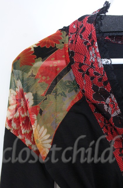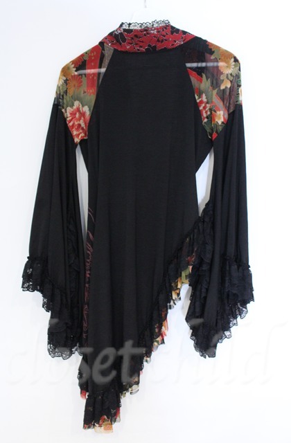 Qutie Frash / メッシュショルダーアシメ着物カーディガン ブラック×オレンジ O-25-12-03-014-QU-JA-IG-ZT065 [2100080000057208-O-25-12-03-014-QU-JA-IG-ZT065]