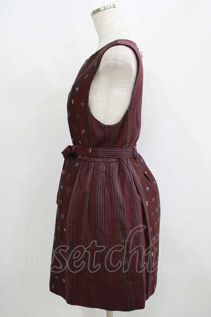 Jane Marple / エンブレムジャガードとレジメンのジャンパースカート ボルドー H-25-09-05-025-JM-OP-KB-ZH