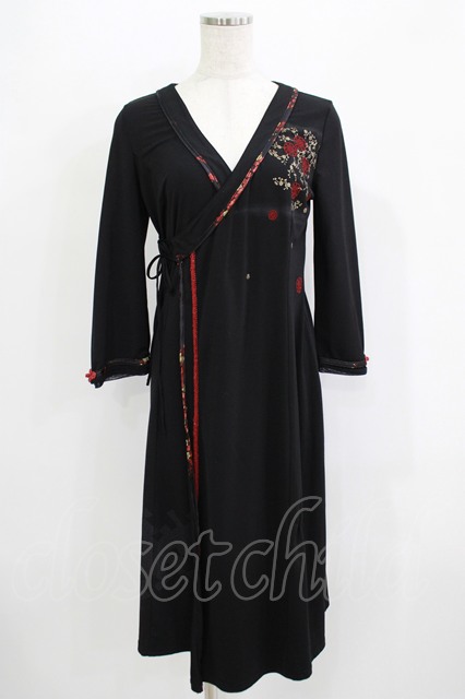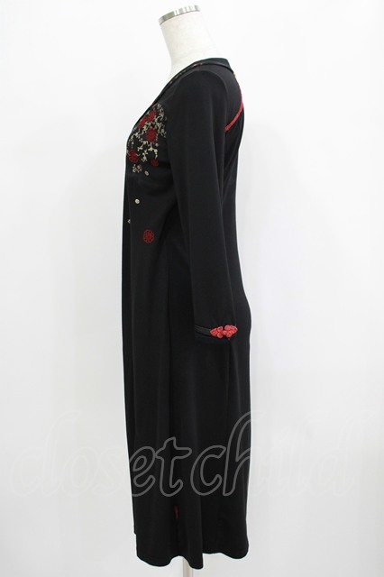 Ozz oneste / 着物衿刺繍ロングチュニック 黒×赤 H-25-09-05-047-OO-TO-KB-ZH