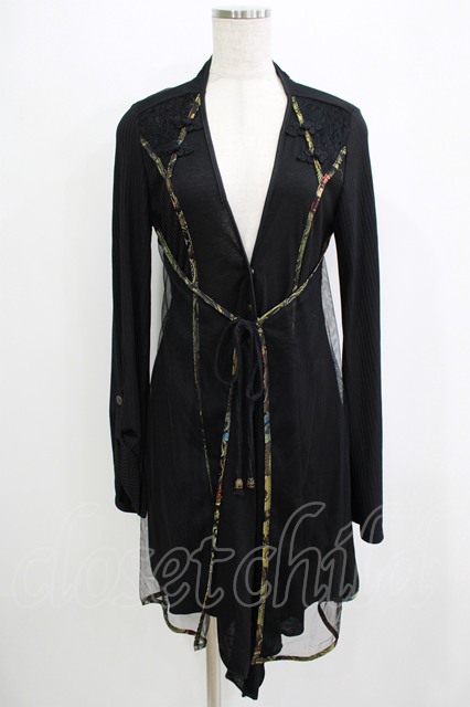 Ozz oneste / メッシュレイヤードロングカーディガン 黒 H-25-09-05-070-OO-TO-KB-ZH [2100030000060921-H-25-09-05-070-OO-TO-KB-ZH]