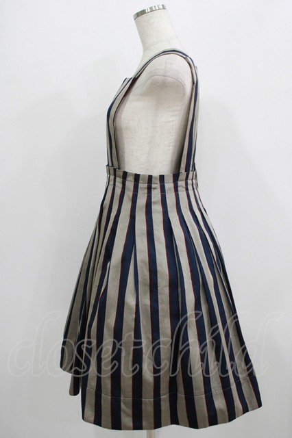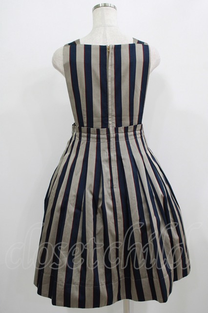 Jane Marple / Regimental stripeのジャンパースカート グレー×ネイビー H-25-09-05-013-JM-OP-KB-ZH