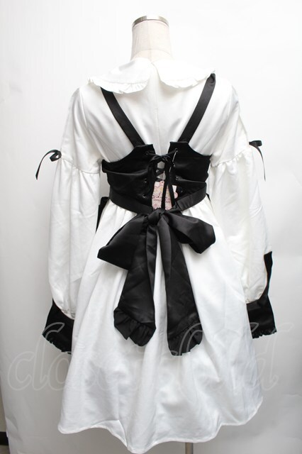 Luna Planetarium / クロスエプロン付きワンピース 白X黒 S-26-01-23-043-LO-CO-SA-ZT144