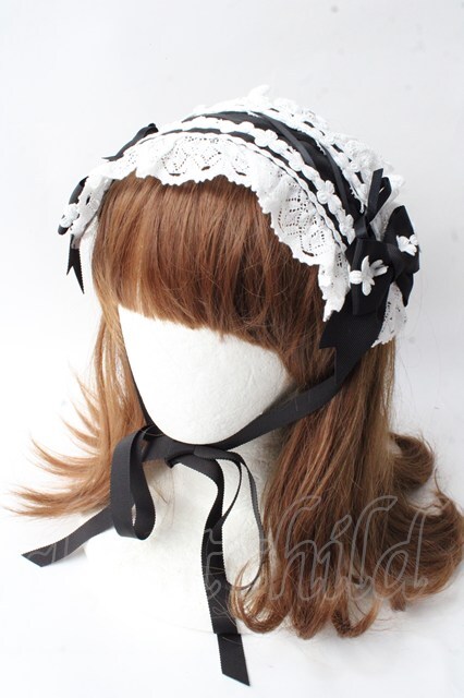 BABY,THE STARS SHINE BRIGHT / 草原のお花摘みの少女スピンドールヘッドドレス 黒×白 Y-25-09-05-015-BA-AC-SZ-ZY