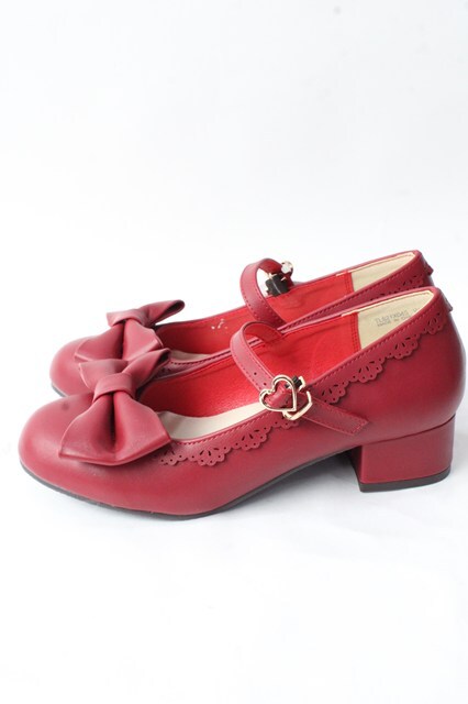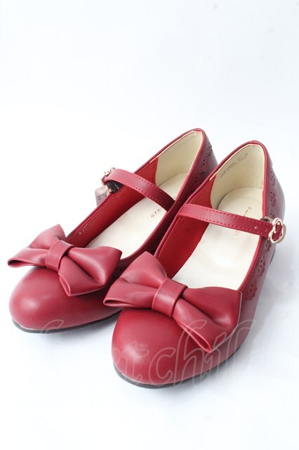 axes femme kawaii / ローヒールリボンパンプス M ワイン Y-25-09-05-016-AX-SH-SZ-ZY