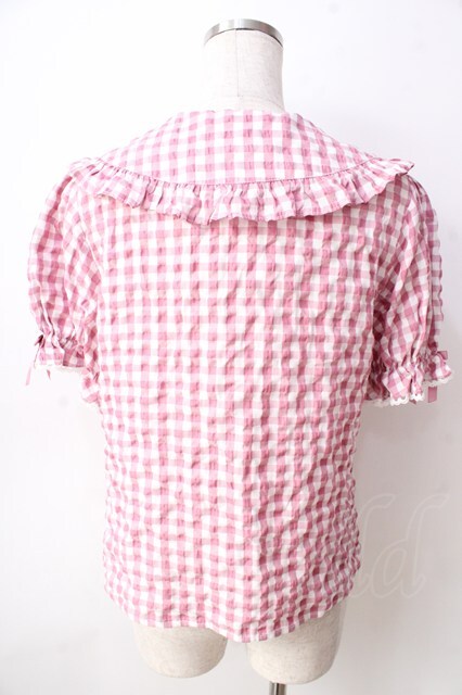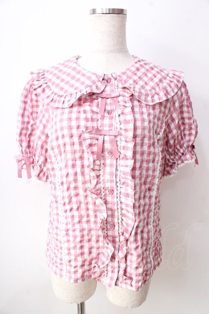 axes femme kawaii / ギンガムチェック半袖ブラウス ピンク Y-25-09-05-023-AX-BL-SZ-ZH