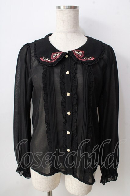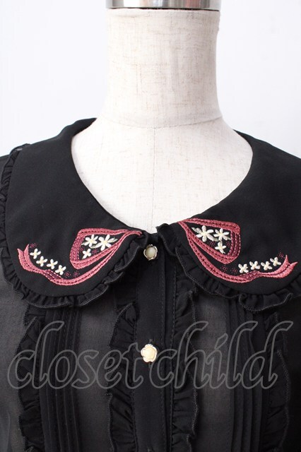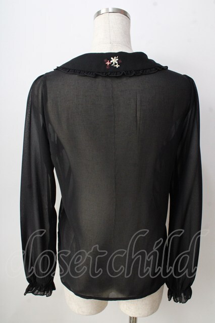 axes femme POETIQUE / 襟刺繍シアーブラウス 黒 Y-25-09-05-032-AX-BL-SZ-ZY
