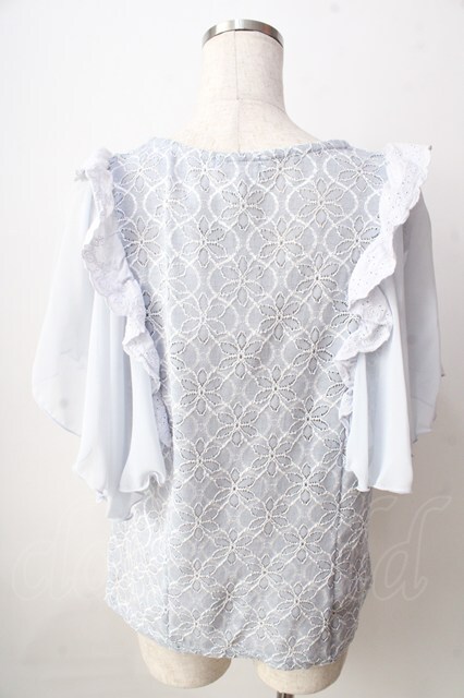 axes femme / 袖フリルカットワークレーストップス サックス Y-25-09-05-044-AX-TO-SZ-ZT103