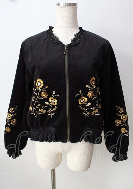 axes femme / 刺繍入りコールテンブルゾン 黒 Y-25-09-05-050-AX-JA-SZ-ZY