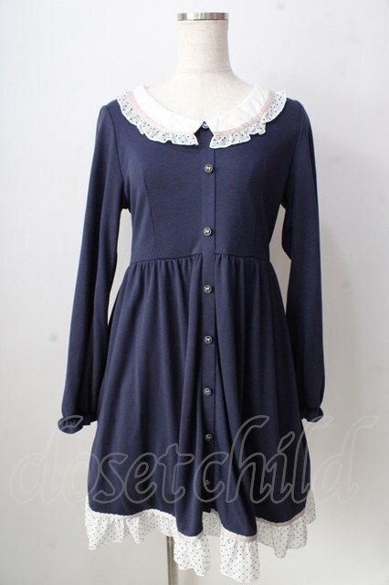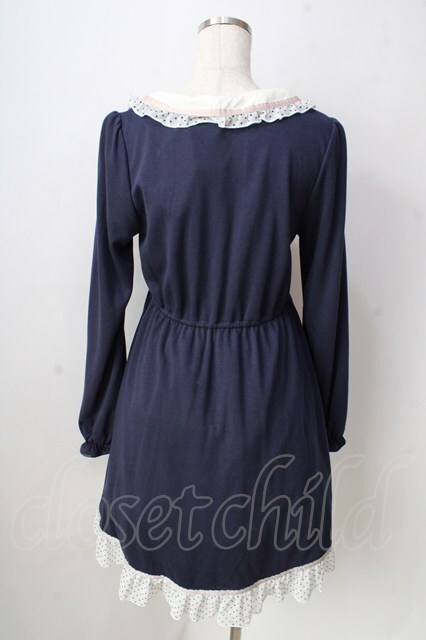 axes femme POETIQUE / ドットフリルカットワンピース 紺 Y-25-09-05-068-AX-OP-SZ-ZY