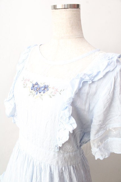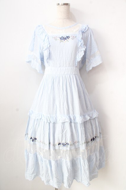 axes femme POETIQUE / フラワー刺繍ピナフォアワンピース サックス Y-25-09-05-073-AX-OP-SZ-ZY