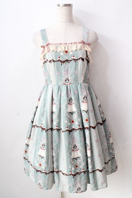 axes femme kawaii / お菓子柄ジャンパースカート グリーン Y-25-09-05-075-AX-OP-SZ-ZY