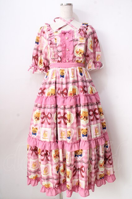 axes femme kawaii / ベアズベーカリー柄ロングワンピース ピンク Y-25-09-05-078-AX-OP-SZ-ZH