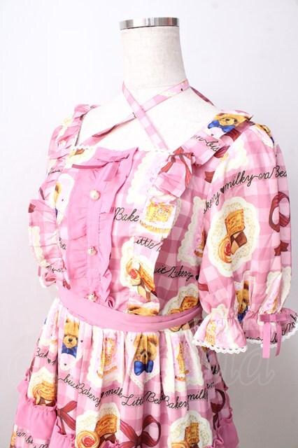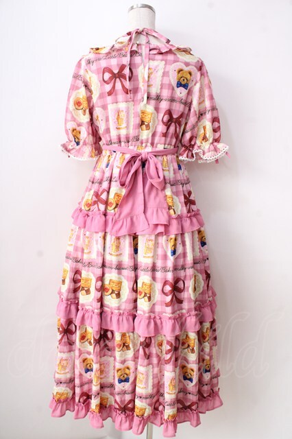 axes femme kawaii / ベアズベーカリー柄ロングワンピース ピンク Y-25-09-05-078-AX-OP-SZ-ZH [2100070000048319-Y-25-09-05-078-AX-OP-SZ-ZH]