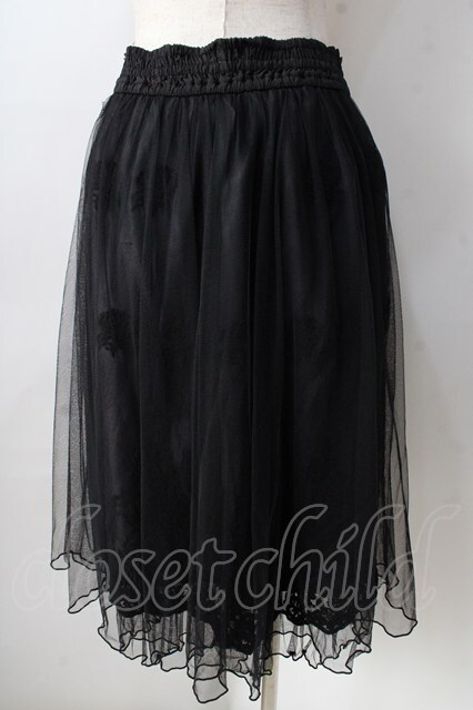 axes femme / レース使いチュールスカート 黒 Y-25-09-05-098-AX-SK-SZ-ZY
